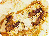 1. 木材成份對干木害蟲的影響,木材由無數小的細胞組成,細胞壁由多糖的纖維素和半纖維素以及具有芳香性的木質素組成,其中纖維素占 40-62%, 木質素18-38%,半纖維素占8-37%,澱粉 60%以上,糖6%,蛋白質1-2%。不同的害蟲對木材的營養要求也不同,竊蠹科能利用自已體的消化直接消化木材裡的纖維素;粉蠹不能消化木質素、纖維素和半纖維,它主要吸取木材裡的澱粉及少量的糖分;竹蠹、天牛也以澱粉和糖分作為營養源。